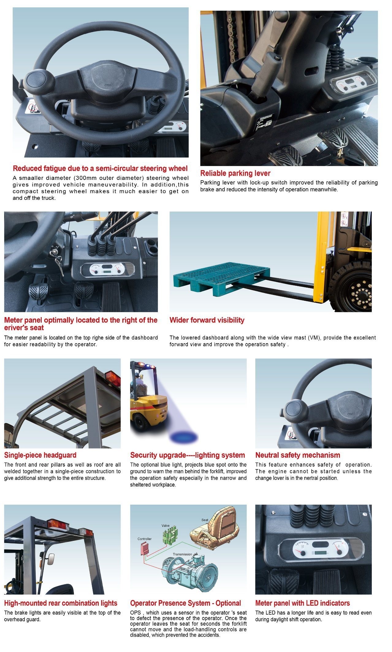| Motor chinês xinchang | Motor Isuzu C240 original japonês | Transmissão hidráulica mecânica | Filtro de ar de escape elevado | 3 m,3.5m, 4m,4.2 m,4.5 mm de mastro | Mudança lateral | Cabine |