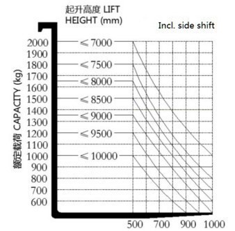 Assegurar a ausência de qualquer perda de carga a 6000 mm com base no centro de carga padrão,também a capacidade de carga em elevação maior são