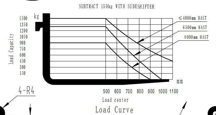 | Capacidade de carga nominal | Q (kg) | 1500 |